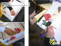 A turma do 7.º OP3 A “deu uma mãozinha” ao projeto, construindo uma pequena estante para os livros, recuperando/reciclando uma caixa de madeira de fruta que trabalhou com a “técnica do guardanapo”.